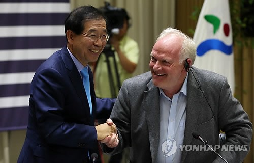 (¼¿ï=¿¬ÇÕ´º½º) Àü¼ö¿µ ±âÀÚ = ¹Ú¿ø¼ø ¼¿ï½ÃÀå°ú ¿ï¸®È÷ º¤ µ¶ÀÏ ¹ÀÇî´ëÇб³ ±³¼ö°¡ 11ÀÏ ¿ÀÈÄ ¼¿ï½Ãû¿¡¼ ¿¸° '¸Þ°¡½ÃƼ ½ÌÅ©ÅÊÅ© ÇùÀÇü(ÀÌÇÏ ¸ÞŸ)'ÀÇ Ã¢¸³ Æ÷·³ '¸Þ°¡½ÃƼ: ¾ÈÀüµµ½Ã¸¦ ÇâÇÏ¿©'¿¡¼ Àλ縦 ³ª´©°í ÀÖ´Ù.